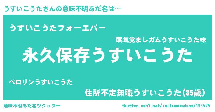 | 胡散臭い通販商品みたいなあだ名 | 『前代未聞の健康食品…その名も「うすいこうた」』 |