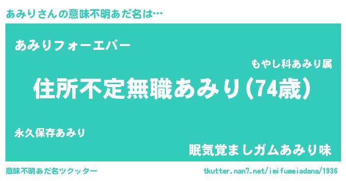 | ヒーロー風カッコイイあだ名 | 『仮面アミダー』『ウルトラあみりマン』 |