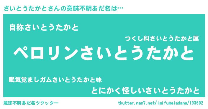 | 恥ずかしいあだ名 | 『プリティーさいとうたかと』『さいちん』 |