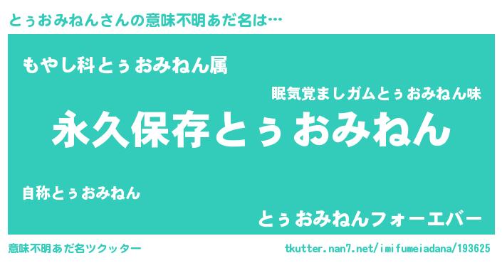 | 男性向けラノベタイトル風あだ名 | 『うちのとぅおみねんが世界を掌握している!』 |