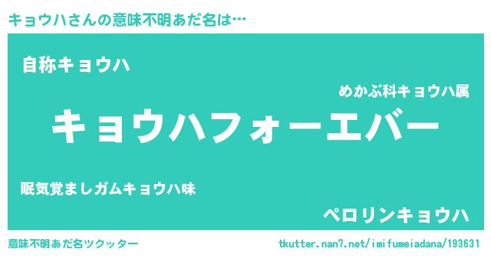 | ファンタジー風あだ名 | 『エターナルキョウハー』『ゼキョトゥ』 |
