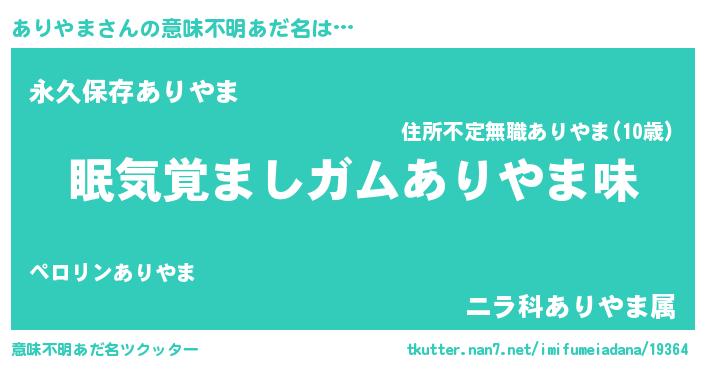| ヒーロー風カッコイイあだ名 | 『慈愛の使者ありやま』『ネオアリヤマ』 |
