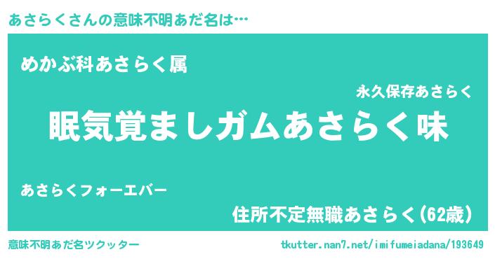 | 欧米人風あだ名 | 『ダニエルあさらく』 |