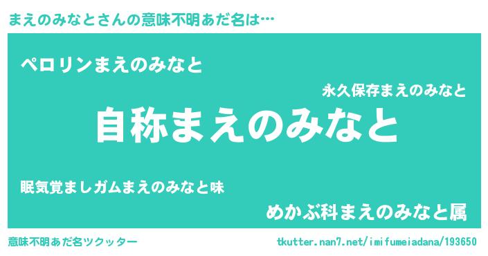 | 男性向けラノベタイトル風あだ名 | 『Re:まえのみなとから始める異世界生活』 |