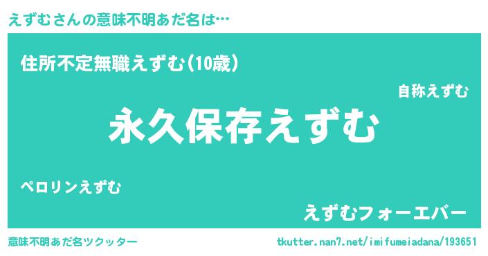 | 男性向けラノベタイトル風あだ名 | 『えずむという概念が存在しない退屈な世界 』 |