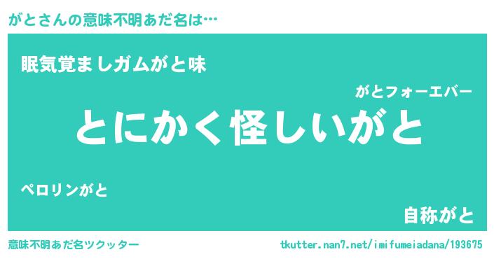 | ヒーロー風カッコイイあだ名 | 『暗黒騎士ガト』『慈愛の使者がと』 |