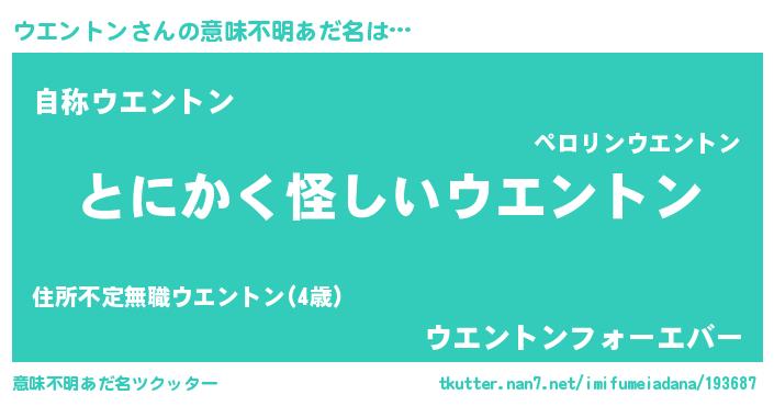 | 男性向けラノベタイトル風あだ名 | 『ウエントンの嫁は女の子じゃないと思った?』 |