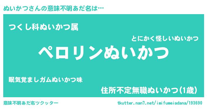 | 胡散臭い通販商品みたいなあだ名 | 『モテモテ間違いなし水晶球…その名も「ぬいかつ」』 |