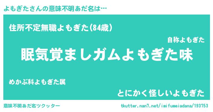 | ヘコむあだ名 | 『よもっぺ』『酢こんぶ』 |