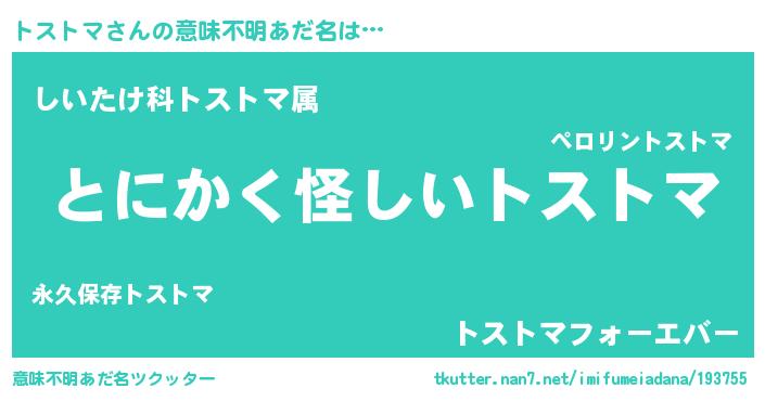 | 男性向けラノベタイトル風あだ名 | 『ダンジョンにトストマを求めるのは間違っているだろうか』 |
