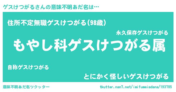 | 伝説のあだ名 | 『解き放たれた遊び人ゲスけつがる』 |