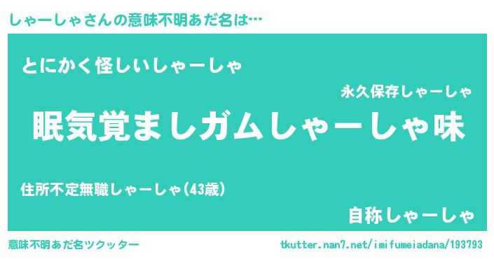 | ヒーロー風カッコイイあだ名 | 『天空の使者しゃーしゃ』『黄金騎士シャ』 |