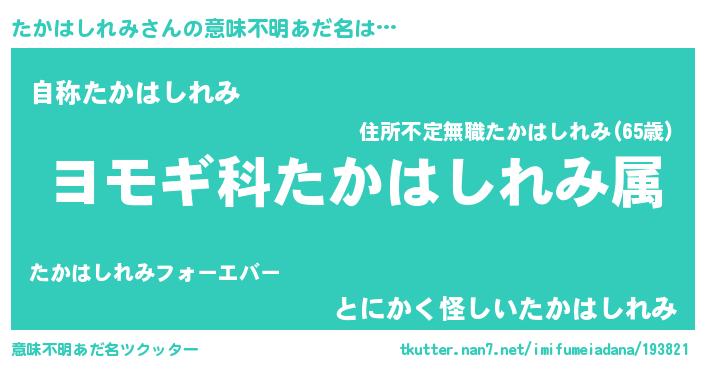| 胡散臭い通販商品みたいなあだ名 | 『芸能人もオススメする高麗人参…その名も「たかはしれみ」』 |