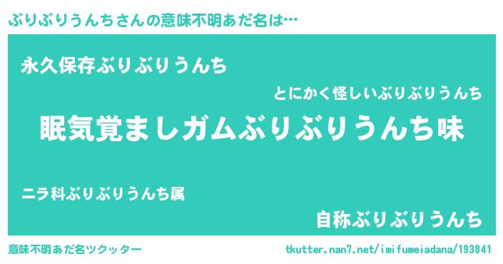 | ヒーロー風カッコイイあだ名 | 『慈愛の使者ぶりぶりうんち』 |