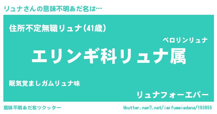 | 男性向けラノベタイトル風あだ名 | 『リュナスレイヤー』 |