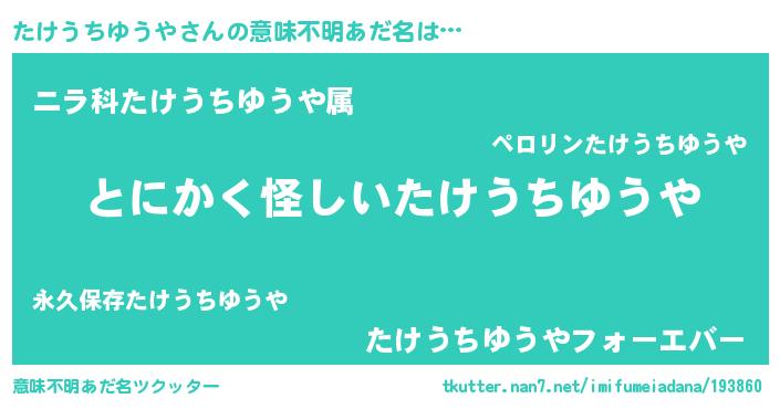 | 男性向けラノベタイトル風あだ名 | 『たけうちゆうやの嫁は女の子じゃないと思った?』 |