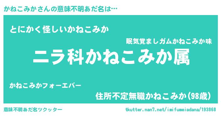 | 欧米人風あだ名 | 『トリンドルかねこみか』 |