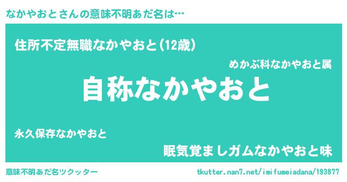 | 欧米人風あだ名 | 『なかやおと・ステッグマイヤー』 |