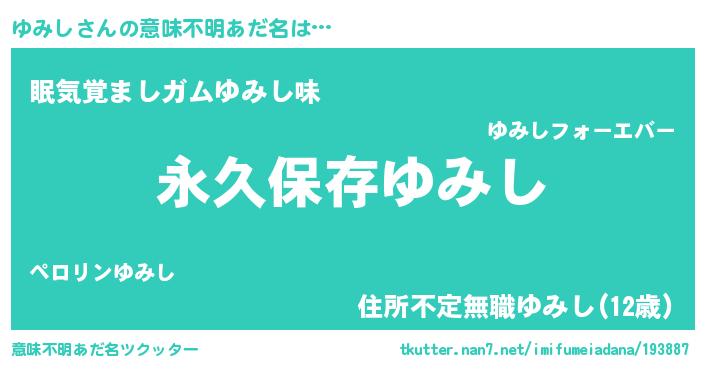 | 欧米人風あだ名 | 『ゆみし・ステッグマイヤー』 |