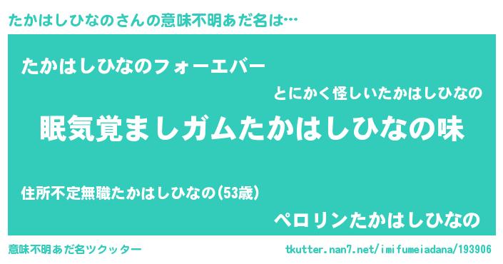 | 欧米人風あだ名 | 『たかはしひなの・ステッグマイヤー』 |