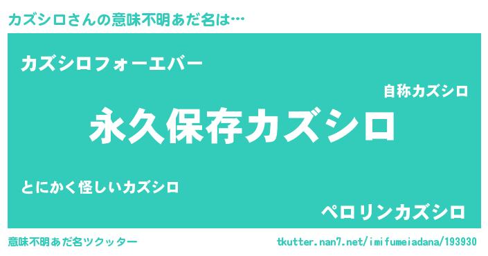| 男性向けラノベタイトル風あだ名 | 『カズシロという概念が存在しない退屈な世界 』 |