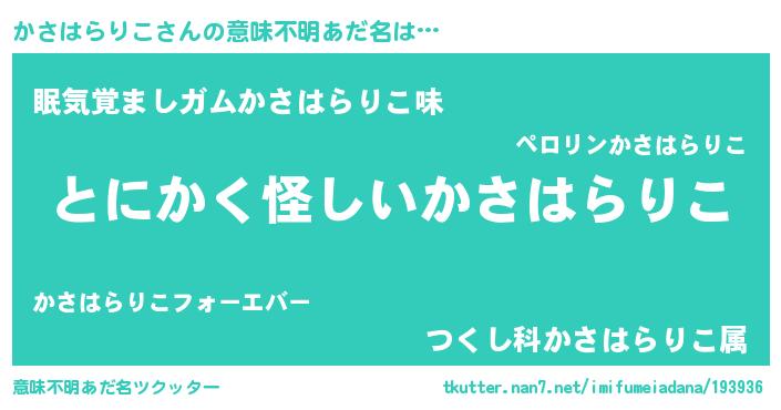 | 胡散臭い通販商品みたいなあだ名 | 『信頼と実績のペンダント…その名も「かさはらりこ」』 |