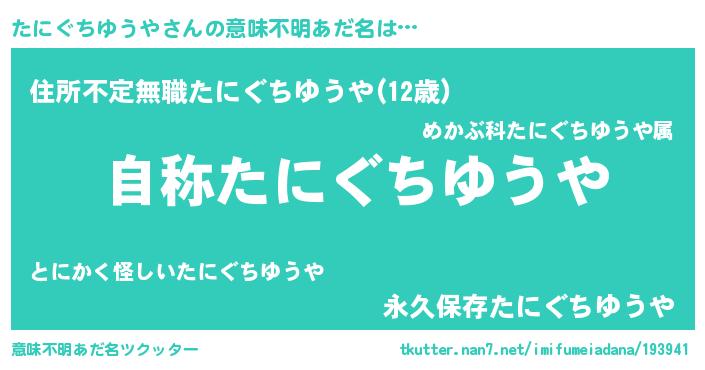 | ヘコむあだ名 | 『たにぐちゆうや(笑)』『たにっ子』 |