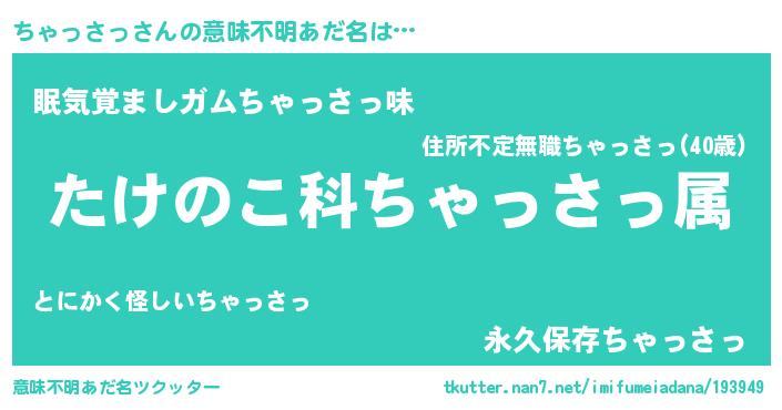 | 料理風あだ名 | 『ちゃっさっごはん』 |