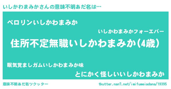 | 男性向けラノベタイトル風あだ名 | 『はたらくいしかわまみかさま!』 |
