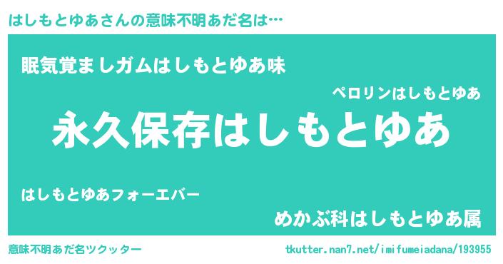 | ヘコむあだ名 | 『はしもとゆあ(爆)』『はしにー』 |