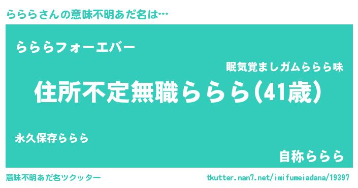 | ヒーロー風カッコイイあだ名 | 『仮面ララダー』『ウルトラらららマン』 |