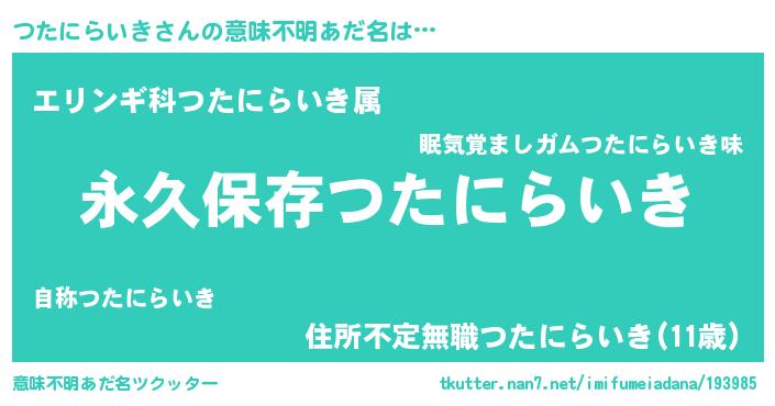 | 胡散臭い通販商品みたいなあだ名 | 『絶対に幸福をもたらす健康食品…その名も「つたにらいき」』 |