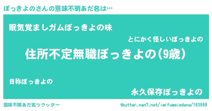 | ヒーロー風カッコイイあだ名 | 『仮面ボッダー』『正義の使者ぼっきよの』 |