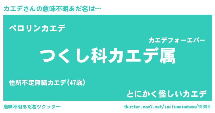 | 胡散臭い通販商品みたいなあだ名 | 『億万長者になれるブレスレット…その名も「カエデ」』 |