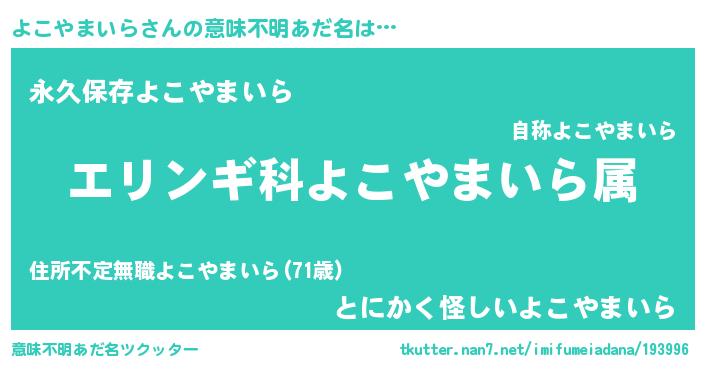 | ファンタジー風あだ名 | 『ユリヨコヴァット』『ヨコディッシュ』 |