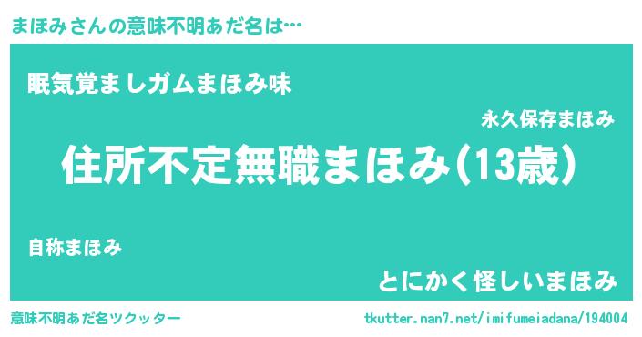 | ヘコむあだ名 | 『まほ太郎』『まほみ(苦笑)』『豆乳』 |