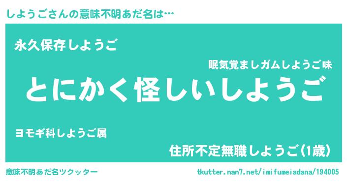 | 女子向けラノベタイトル風あだ名 | 『しようごの卵を拾いまして』 |