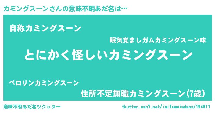 | 料理風あだ名 | 『カミングスーンの豆乳スープ』 |