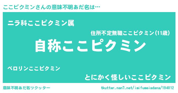| 女子向けラノベタイトル風あだ名 | 『ここピクミンアンティーク』 |
