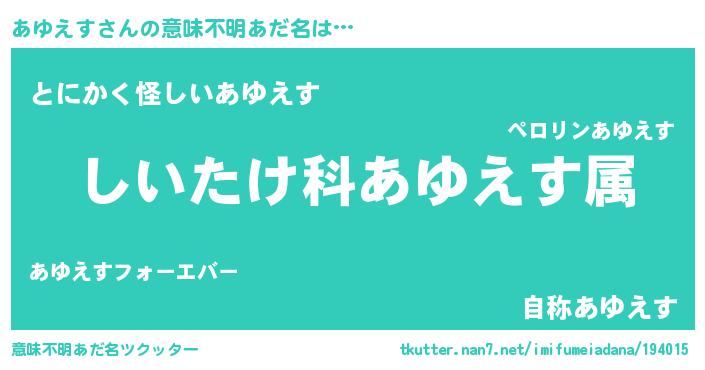 | ヒーロー風カッコイイあだ名 | 『黄金騎士アユ』『最強戦士アユエス』 |
