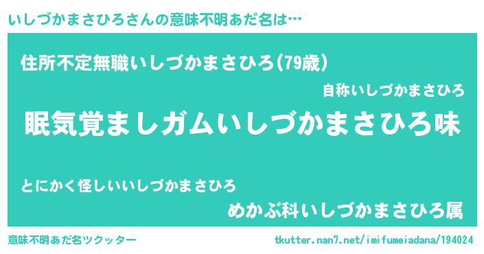 | 男性向けラノベタイトル風あだ名 | 『いしづかまさひろに滅ぼされるだけの簡単なお仕事です』 |