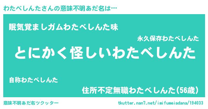 | 欧米人風あだ名 | 『アンジェラ・わたべしんた』 |