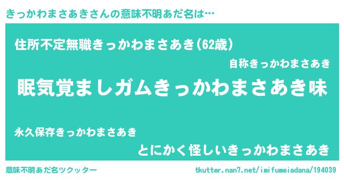 | 男性向けラノベタイトル風あだ名 | 『おまえをオタクにしてやるから、俺をきっかわまさあきにしてくれ! 』 |