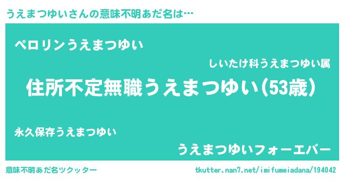 | 欧米人風あだ名 | 『アンジェラ・うえまつゆい』 |