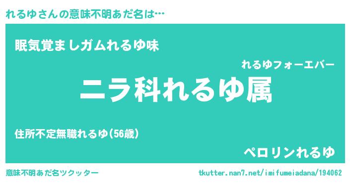 | 肩書あだ名 | 『れるゆ中将』『れるゆ教授』 |