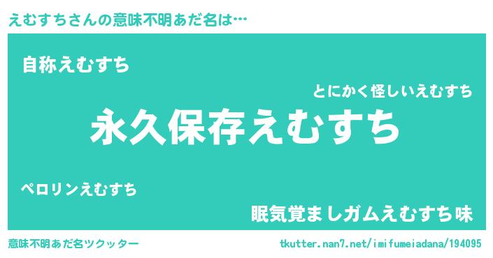 | 欧米人風あだ名 | 『えむすち・ステッグマイヤー』 |