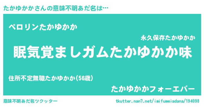 | ヒーロー風カッコイイあだ名 | 『慈愛の使者たかゆかか』『仮面タカダー』 |