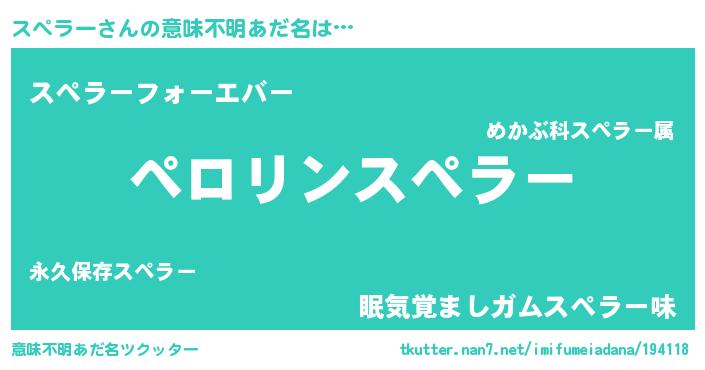 | 男性向けラノベタイトル風あだ名 | 『スペラーの憂鬱』『スペラースレイヤー』 |