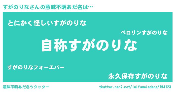 | 男性向けラノベタイトル風あだ名 | 『Re:すがのりなから始める異世界生活』 |