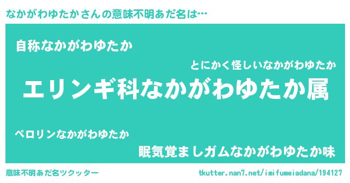 | 料理風あだ名 | 『なかがわゆたかごはん』 |